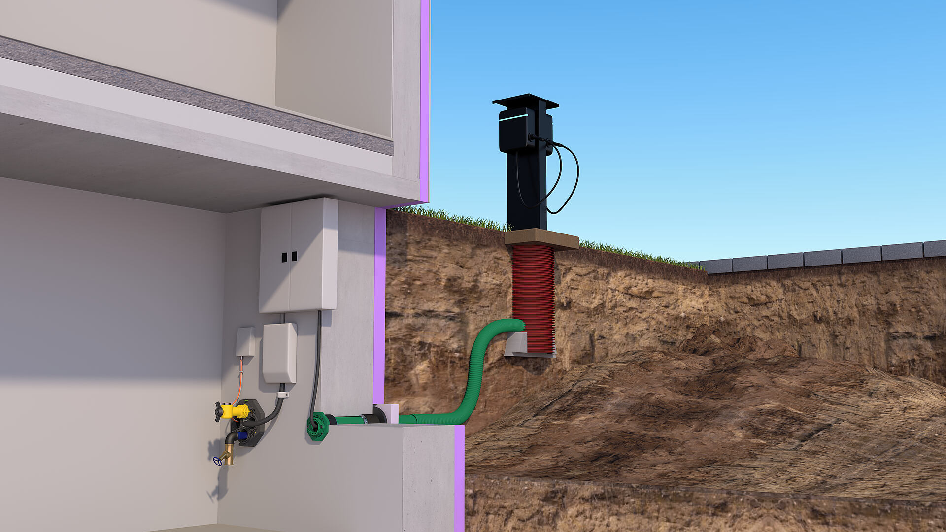 • Do not lay house connection lines through the Building services outlet ETGAR!